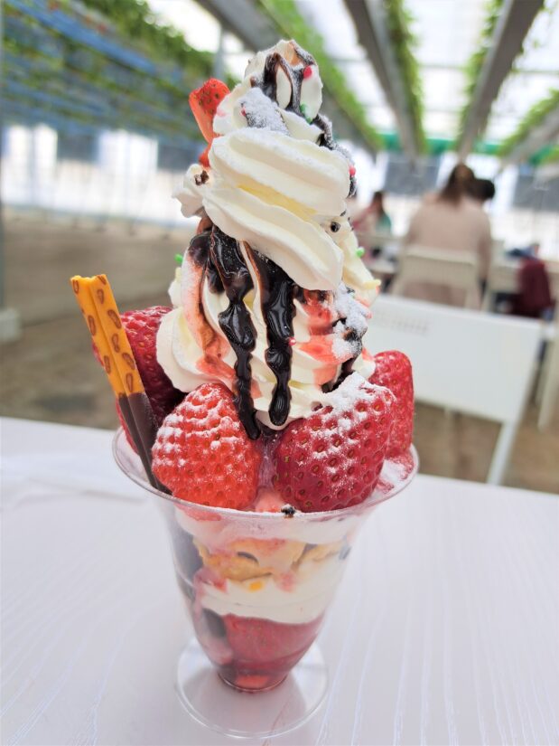 いちごの収穫量には上限があるのでいちごが小さい時期、少ない時期でも楽しんでいただけるようにと単価を低く設定したパフェ作りプランを始めました。いちごには量だけでなくサイズの大小もお客様の満足度にもかかわるので小さいいちごを活かしたプランができたと思います。